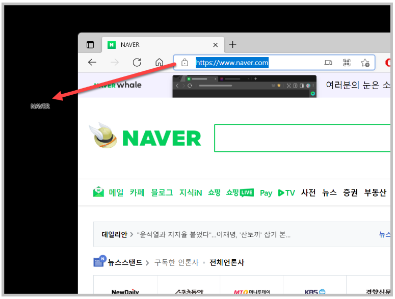 네이버는 일반 브라우저로도 이용을 할 수 있지만 네이버 전용 브라우저가 별도로 있습니다. 이 브라우저 이름은 웨일 브라우저 입니다.