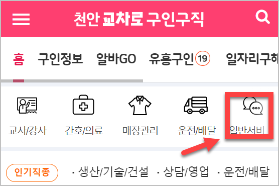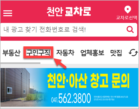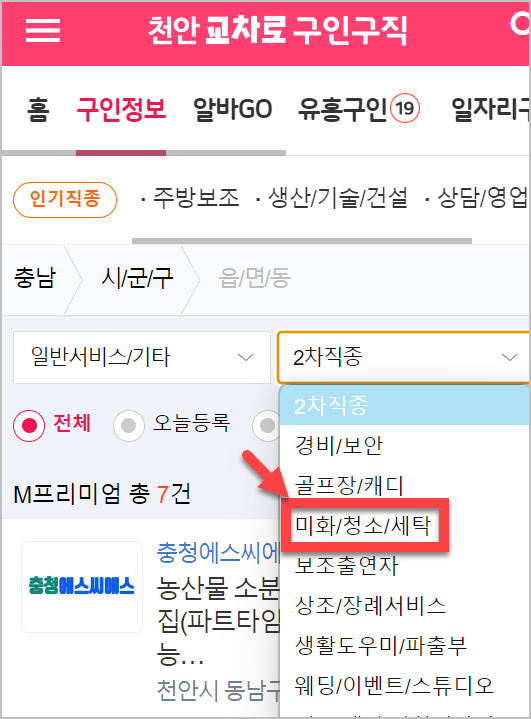 제가 직접 천안교차로 사이트에 들어가 미화원 일자리를 찾아봤어요.