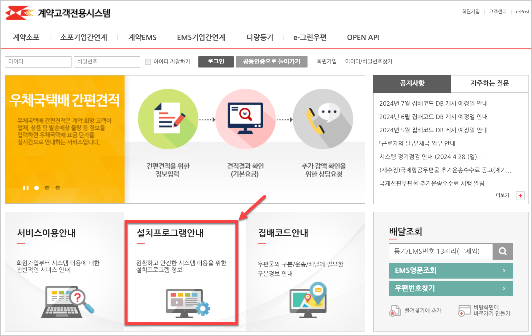 여기 보면 설치프로그램 안내라고 되어 있는데, 이것을 클릭해서 들어가면 됩니다.