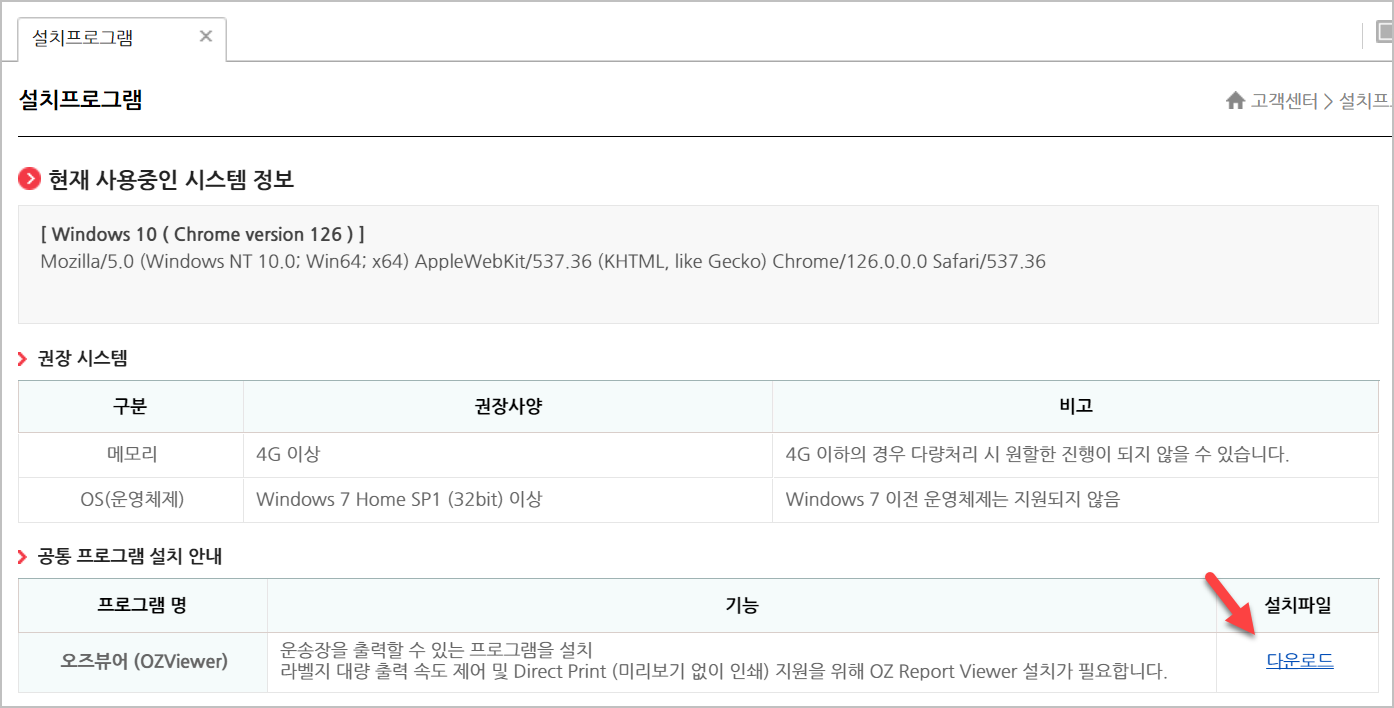 여기에 오즈뷰어(OZViewer) 라고 되어 있는게 있습니다. 이것을 클릭하면 설치파일을 다운로드 할수 있습니다. 이것을 활용하길 권해드립니다.